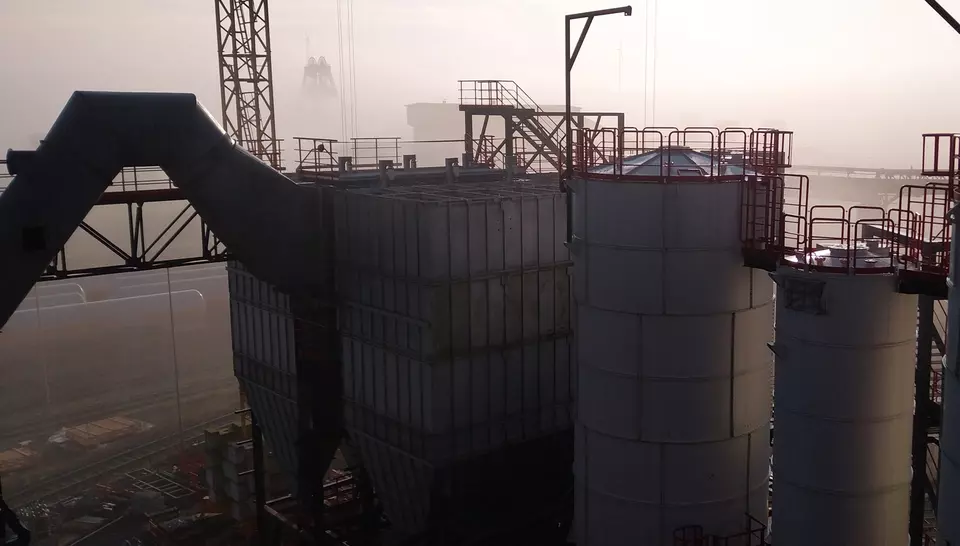 👉 Die Rauchgase durchlaufen einen Gewebefilter, der aus sechs Kammern mit je 276 Schläuchen besteht. Die Filterfläche beträgt 4.280 m².