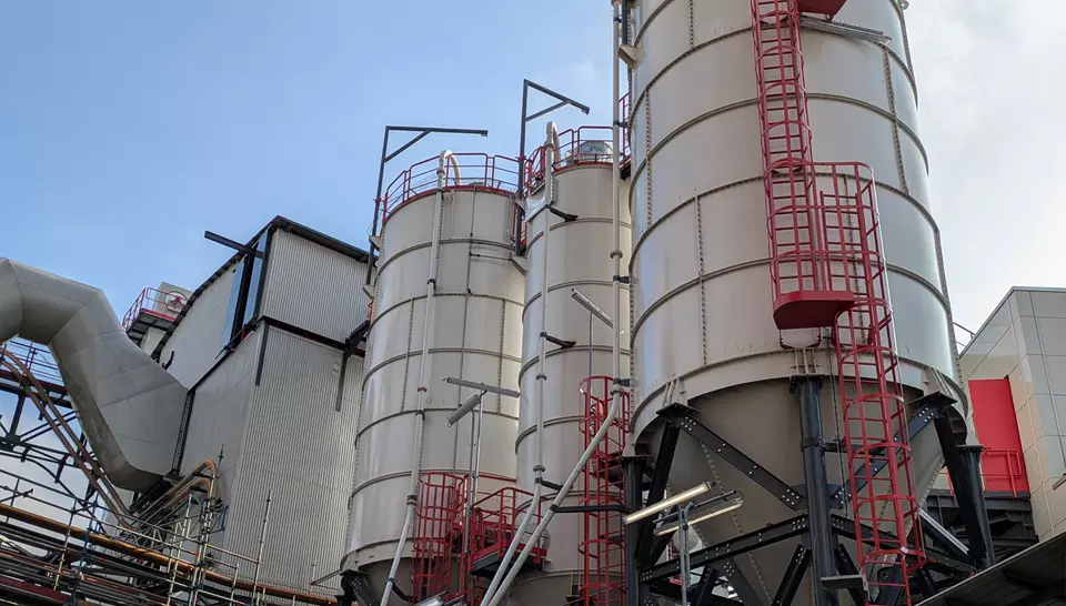 👉 Staub sammelt sich in den beheizten Filterspitzen der Filterkammern und wird über beheizte Förderschnecken, Kratzförderer und Becherförderanlage zur Lagerung in zwei Silos transportiert.